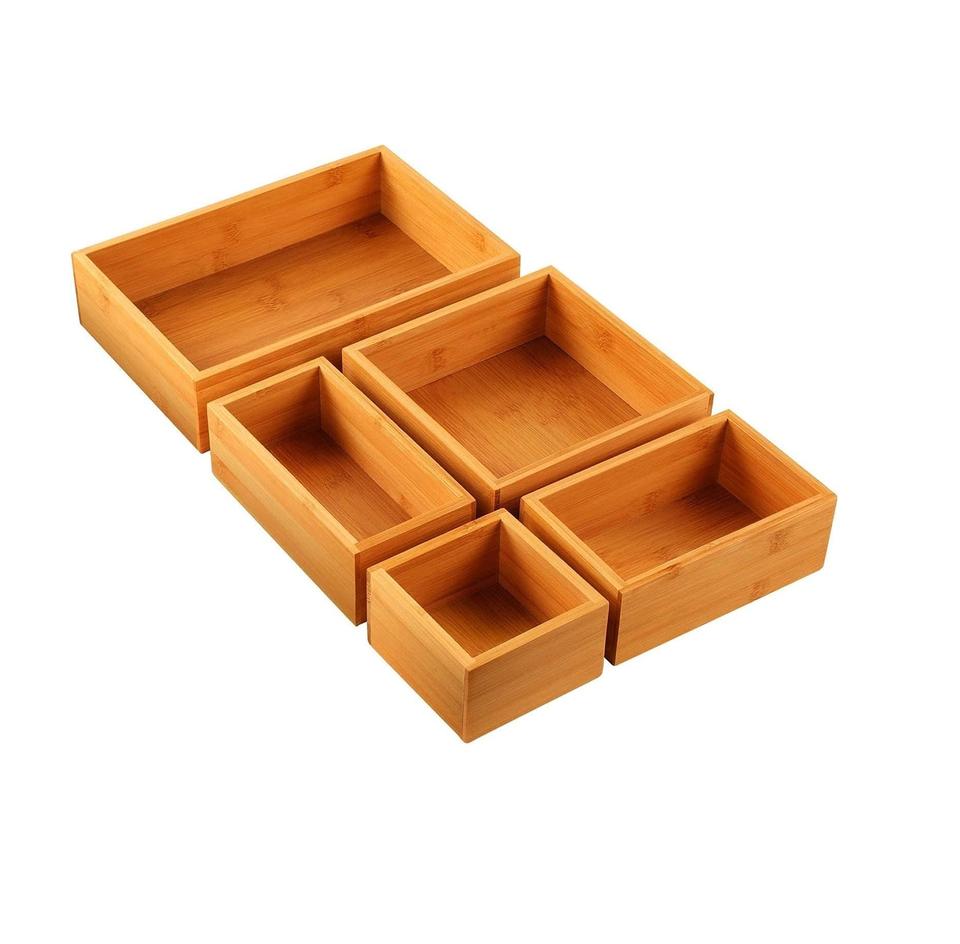 ชุดจัดระเบียบลิ้นชักไม้ไผ่5ชิ้นชุดกล่องเก็บของใช้งานได้หลากหลายหลากหลายขนาดอุปกรณ์จัดระเบียบลิ้นชักขยะสำหรับสำนักงานบ้านห้องครัว
