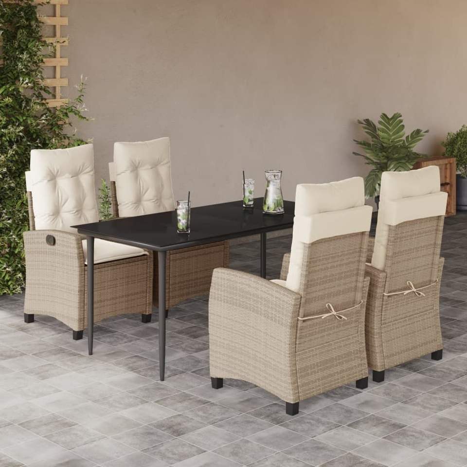 ชุดรับประทานอาหารหวายโพลีสีเบจ5ชิ้นพร้อมเบาะรองนั่งชุดสวน