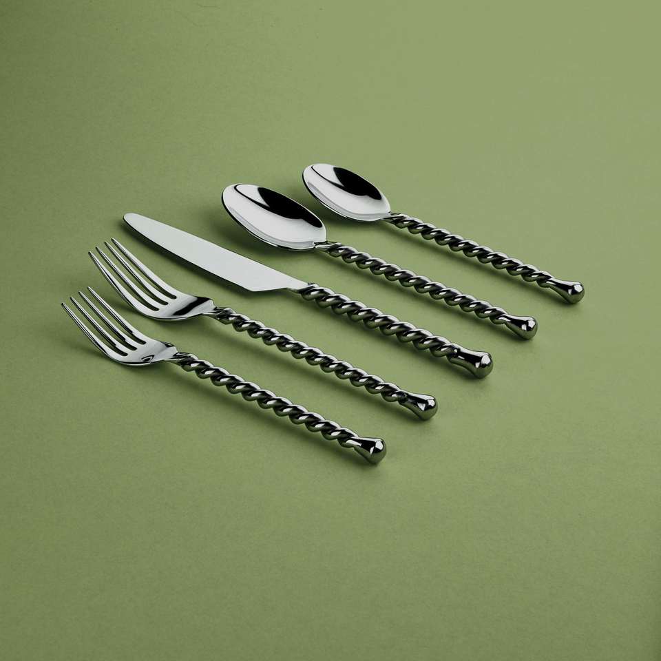 ชุดช้อนส้อมทองเหลือง 5 ชิ้น ด้ามจับสแตนเลสคุณภาพสูง ทันสมัย เหมาะสำหรับงานแต่งงาน ตกแต่งครัวและบ้าน