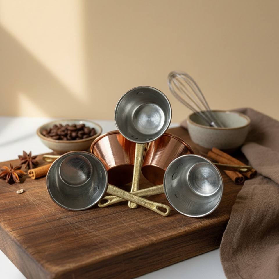 ชุดถ้วยตวงโลหะ 5 ชิ้น ความจุ 60 มล. พร้อมความสามารถในการชั่งน้ำหนักได้ 80 มล. สำหรับการอบและการใช้งานในครัว