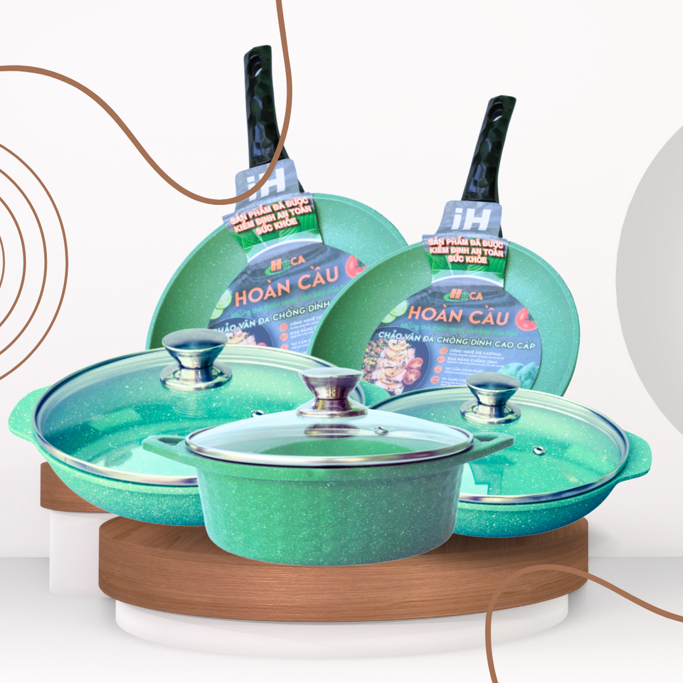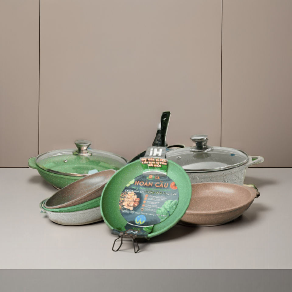 ชุดเครื่องครัวอะลูมิเนียมหล่อขึ้นรูป 5 ชิ้น ทนทาน เป็นมิตรกับสิ่งแวดล้อม ไม่ติดกระทะ