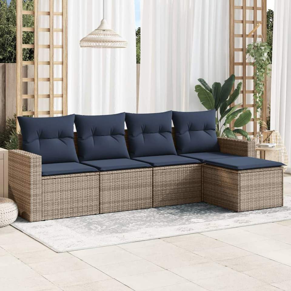 ชุดโซฟาลานบ้านหวายโพลีสีเทา 5 ชิ้นพร้อมเบาะรองนั่ง ชุดสวนสวยหรู