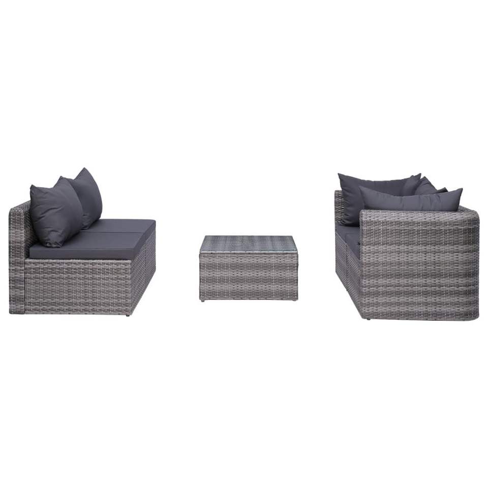ชุดเฟอร์นิเจอร์สวนหวาย PE สีเทา 5 ชิ้น พร้อมชุดโซฟากระจก โครงเหล็กเคลือบสีฝุ่น