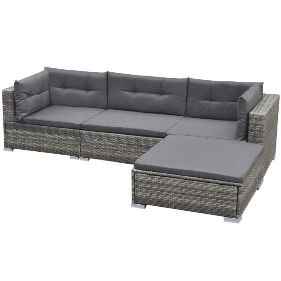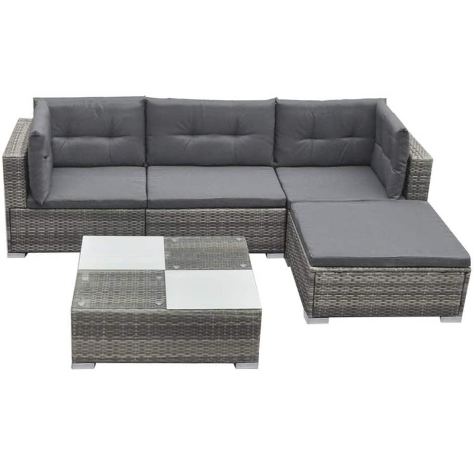 ชุดรับแขกลานโพลีหวายสีเทา5ชิ้นพร้อมเบาะรองนั่งเฟอร์นิเจอร์กลางแจ้ง