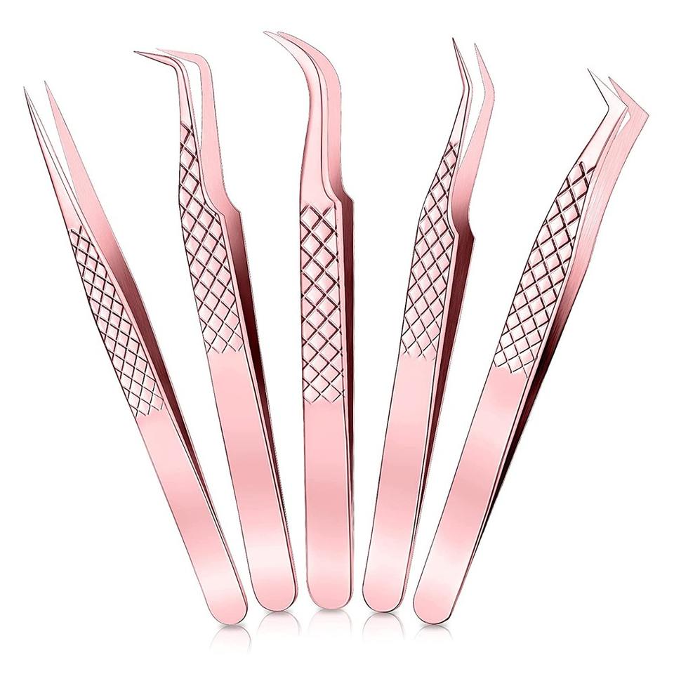 ชุดแหนบต่อขนตาสแตนเลส5ชิ้นชุดเครื่องมือเสริมความงามคิ้วปลายเอียงพร้อมฉลากส่วนตัว