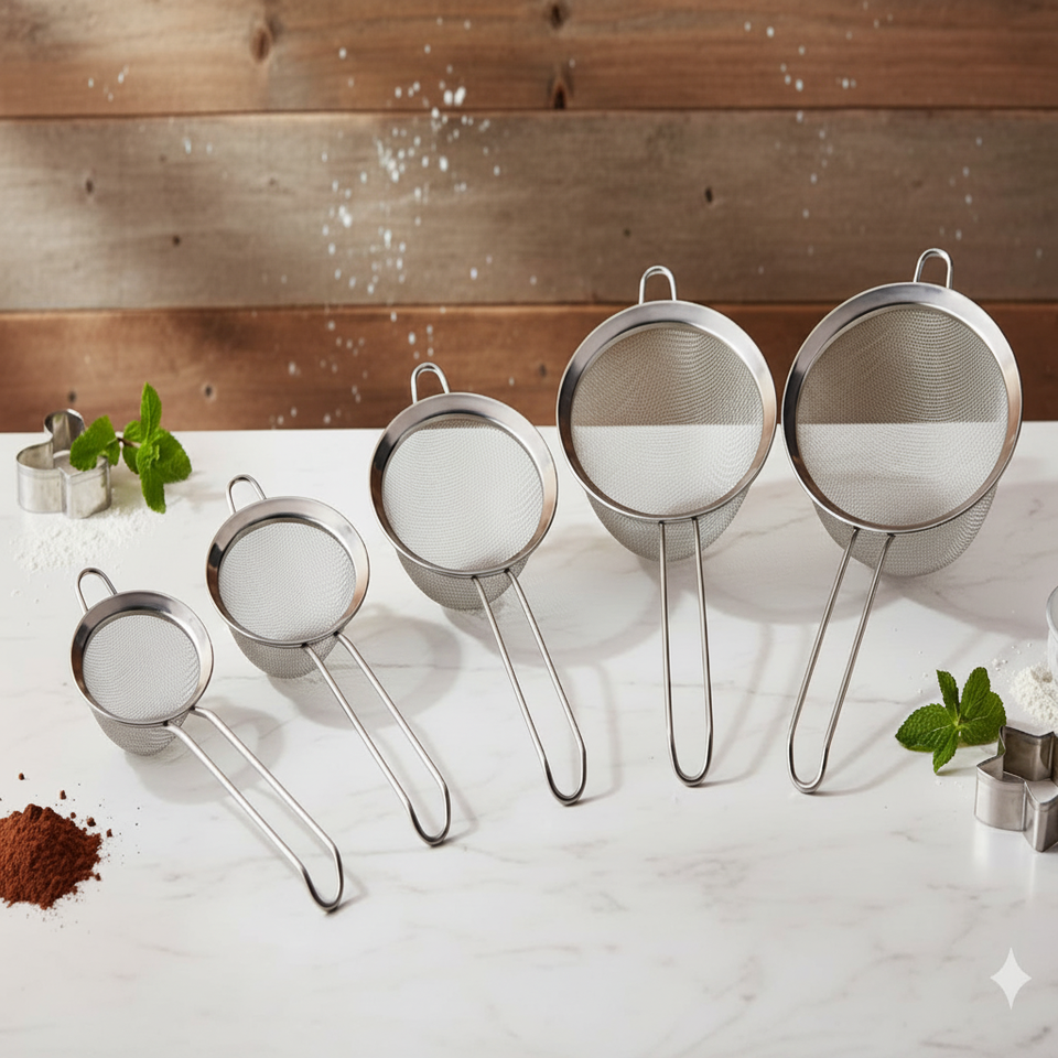 ชุดกระชอนสแตนเลส 5 ชิ้น พร้อมขาตั้งโลหะรักษ์โลก อุปกรณ์เสริมสำหรับครัว