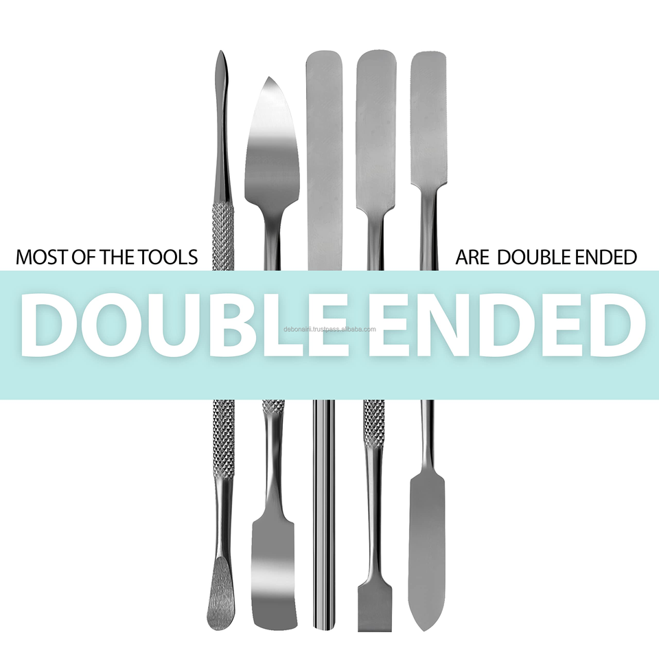 ชุดไม้พายโลหะสแตนเลส5ชิ้นเครื่องมือสองด้านพร้อมผิวกระจกสูงและนิ้วจับในตัวเครื่องมือสำหรับห้องปฏิบัติการและงานฝีมือ