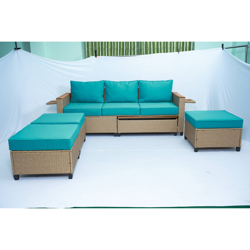 ชุดสวนหวายสีเขียวอมเขียว5ชิ้นประกอบด้วยโซฟากลางแจ้งและโต๊ะกาแฟยกสูง