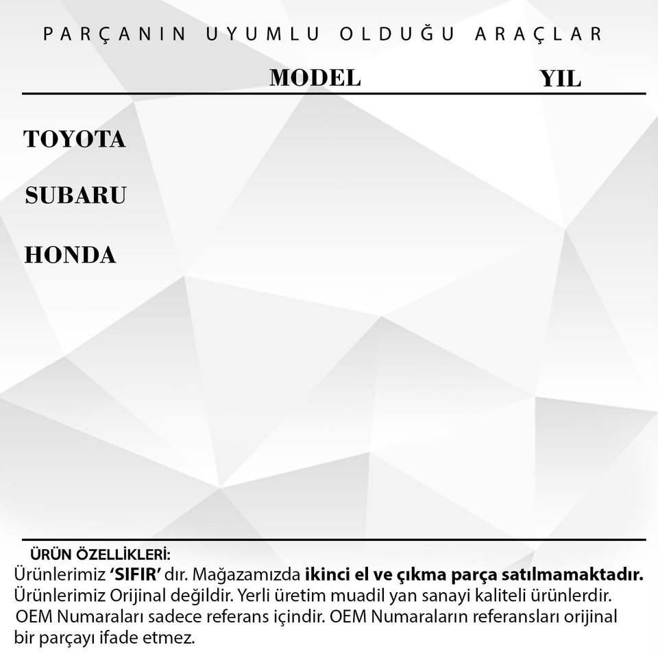 คลิปกันฝุ่น5ชิ้นสำหรับโตโยต้าฮอนด้า (จัดส่งจากผู้ผลิตไก่งวง) รหัสผลิตภัณฑ์: CLS2237