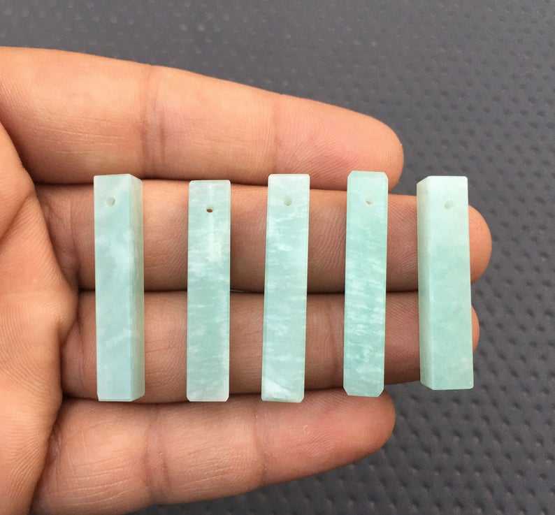 เม็ดบริโอเลตต์พลอยอเมซอนสีเขียว5ชิ้นทรงดินสอเจาะด้านข้างสำหรับทำเครื่องประดับขายส่ง