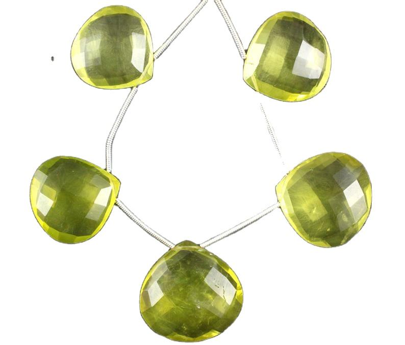 ลูกปัด Briolette รูปหัวใจเหลี่ยมเพชรพลอยหินควอตซ์สีเหลืองมะนาว5ชิ้นสำหรับทำจิวเวลรี่ DIY การแตกหักของมือชาวอินเดีย