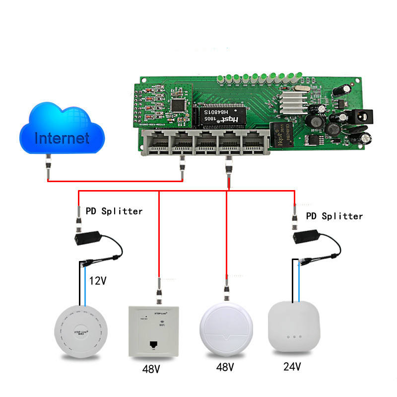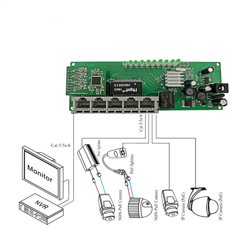 5พอร์ต10/100/1000Mbps RJ45 Gigabit Switches 802.3af/Atสำหรับกล้องIp 48V POEเครือข่ายGigabit Ethernetสวิทช์โมดูล