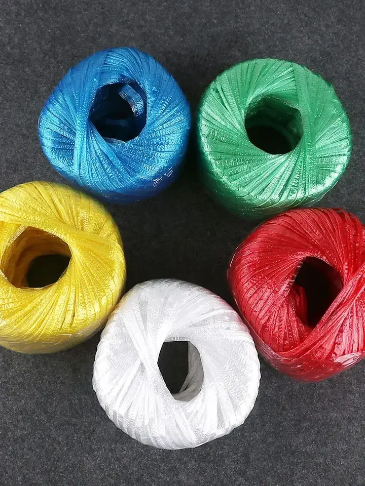 เชือกพลาสติกทนต่อการฉีกขาด5ม้วนสายรัดถุงผ้าทอเชือกมัดรัดสีฟ้าขาวและสีแดง