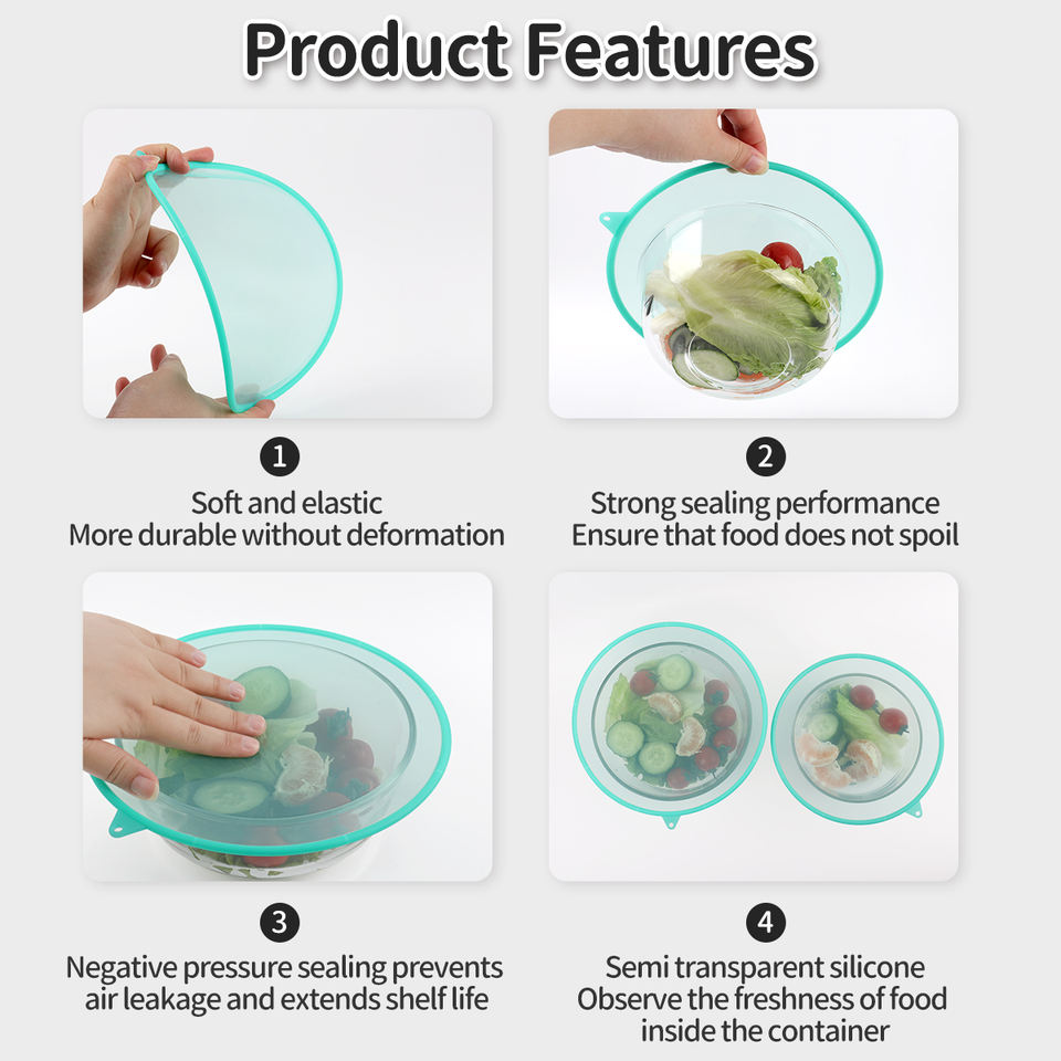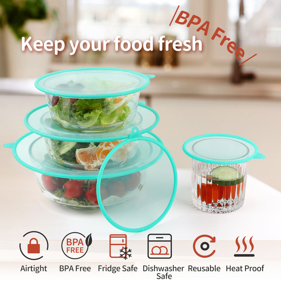 แก้วมัคซิลิโคนใช้ซ้ำได้5ขนาดสำหรับใช้ในครัวสำหรับอาหารสดปิดฝายืด