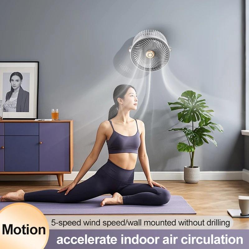 พัดลมติดผนัง/ตั้งโต๊ะ 5 ระดับความเร็ว รุ่น 720 ฟังก์ชั่นปรับระดับและไล่ยุง ชาร์จแบบ Type-C