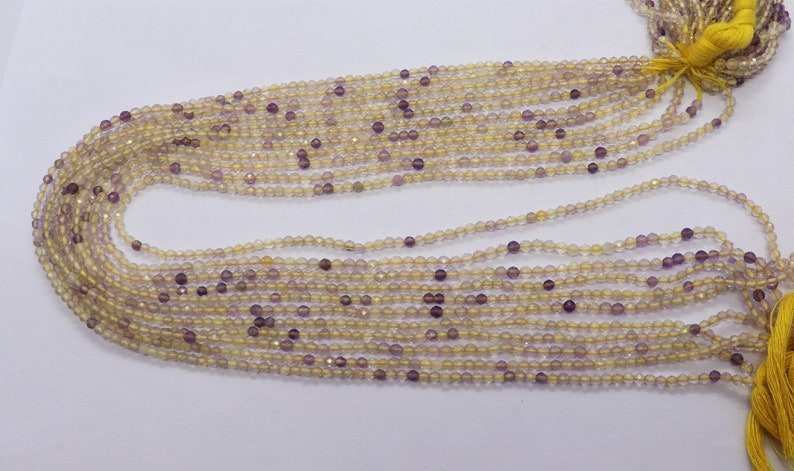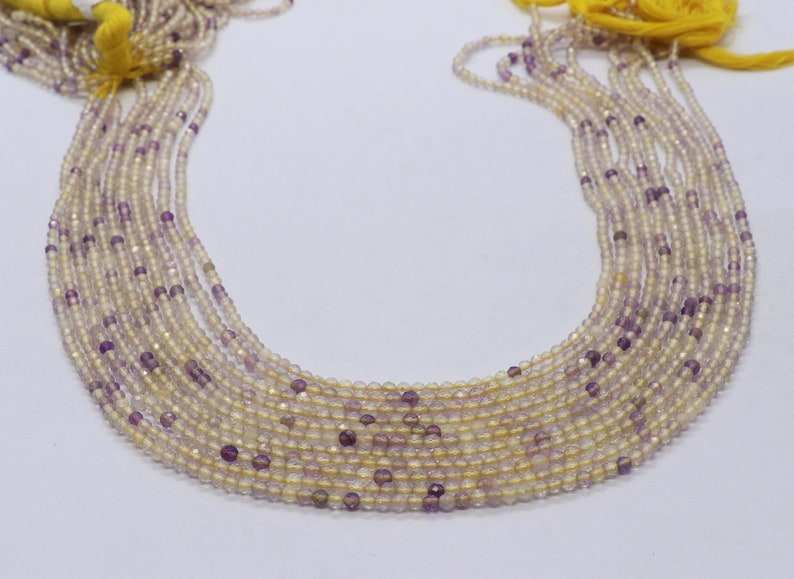 ลูกปัดฟลูออไรต์สีเหลืองธรรมชาติ 5 เส้น เกรด AAA ทรงรอนเดลเหลี่ยมเล็ก ขนาด 2 มม. ลูกปัดพลอยฟลูออไรต์สีเหลือง 13 นิ้ว