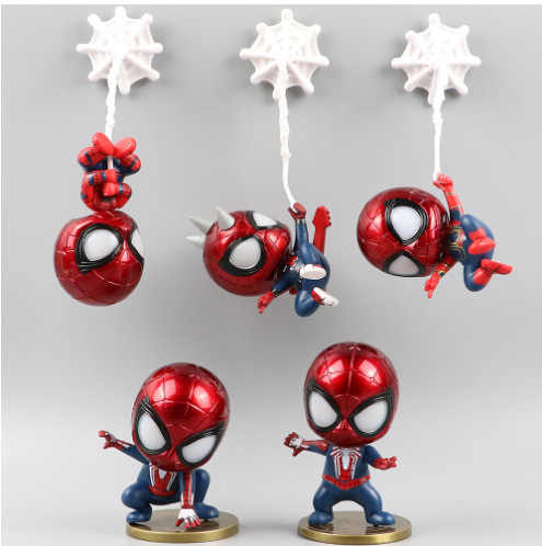 ฟิกเกอร์จิ๋วฮีโร่เว็บสีแดงและสีน้ำเงิน 5 แบบ, ของเล่นแคปซูลตุ๊กตาสำหรับเครื่องคีบตุ๊กตา, ของตกแต่งรถยนต์, ของตกแต่งหน้าเค้ก