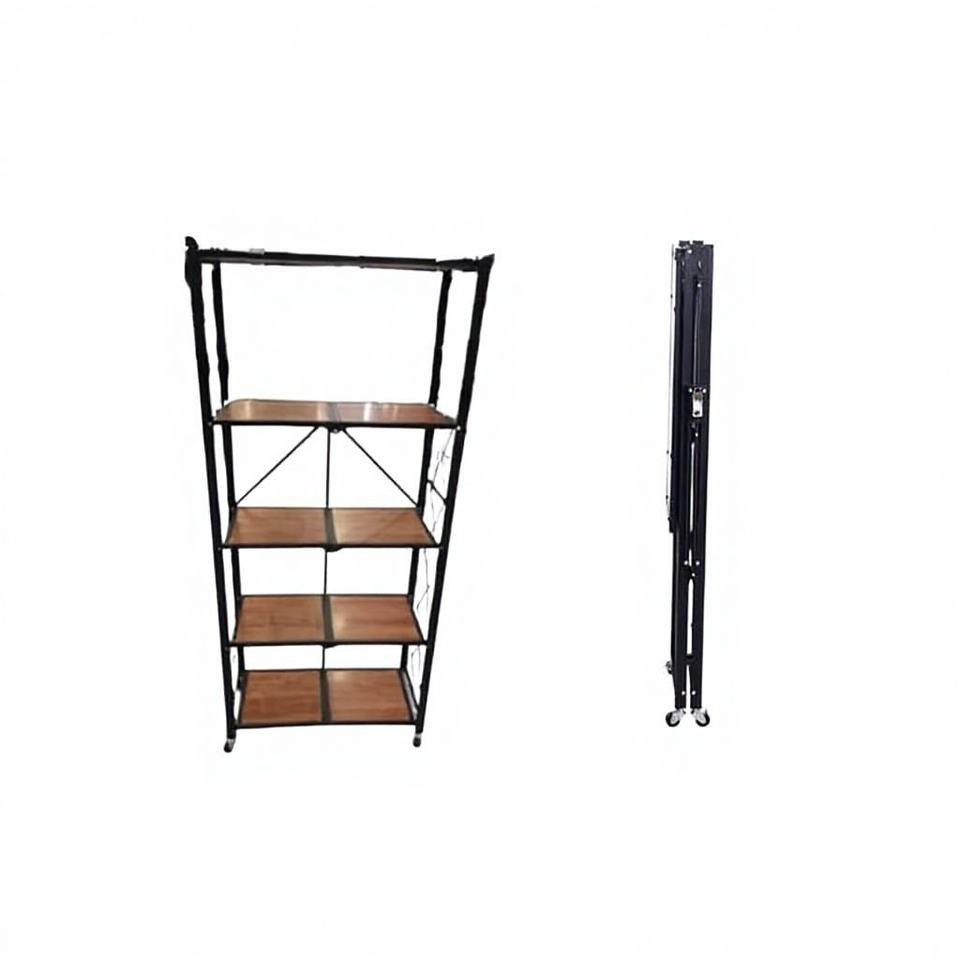 ชั้นวางของแบบพับได้ 5 ชั้น ทำจากไม้ เป็นมิตรกับสิ่งแวดล้อม พร้อมล้อเลื่อน สีดำ สำหรับห้องนั่งเล่น