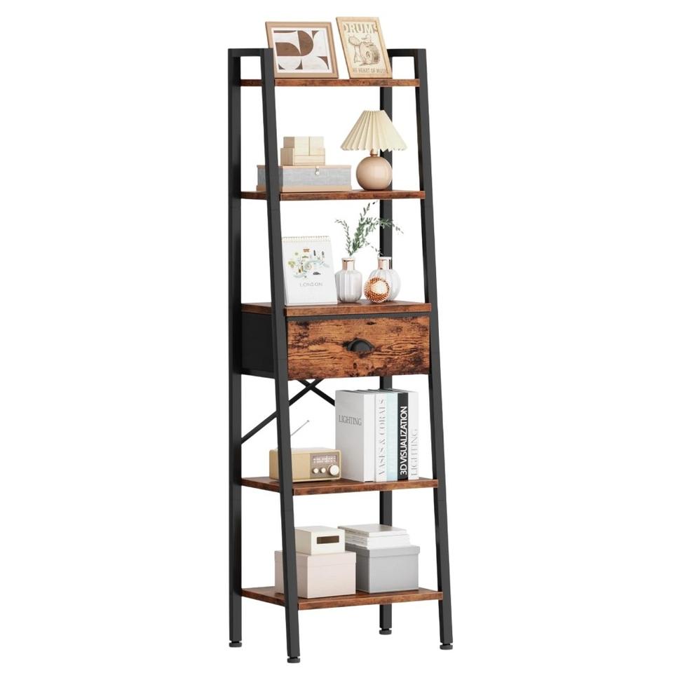 ชั้นวางของอุตสาหกรรม 5 ชั้น พร้อมลิ้นชัก 2 ช่อง ชั้นวางหนังสือแบบตั้งพื้น โครงเหล็ก ชั้นเก็บของไม้ สำหรับขาย
