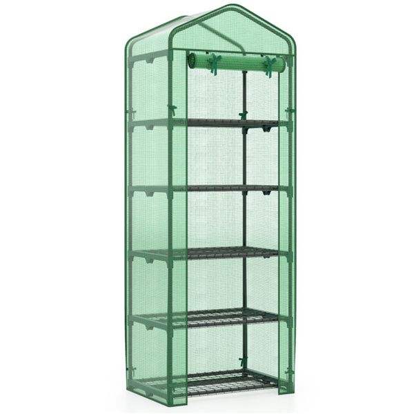 เต็นท์ปลูกพืชแบบพกพา 5 ชั้น สีเขียวขนาดเล็ก พร้อมผ้าคลุมตาข่าย PE ประกอบง่ายไม่ต้องใช้เครื่องมือ สำหรับใช้ภายในและภายนอกอาคาร