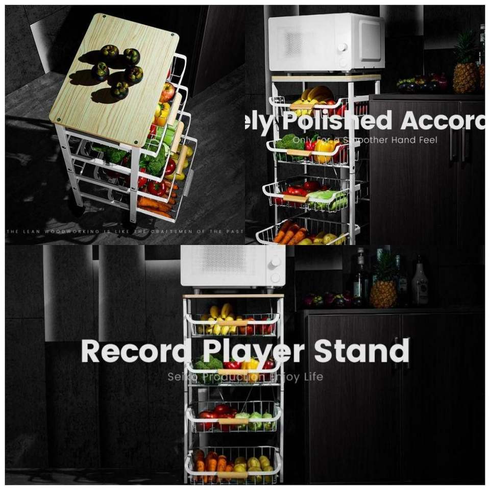 รถเข็นเก็บของในครัว 5 ชั้น แบบมีล้อ พร้อมตะกร้าเก็บของ