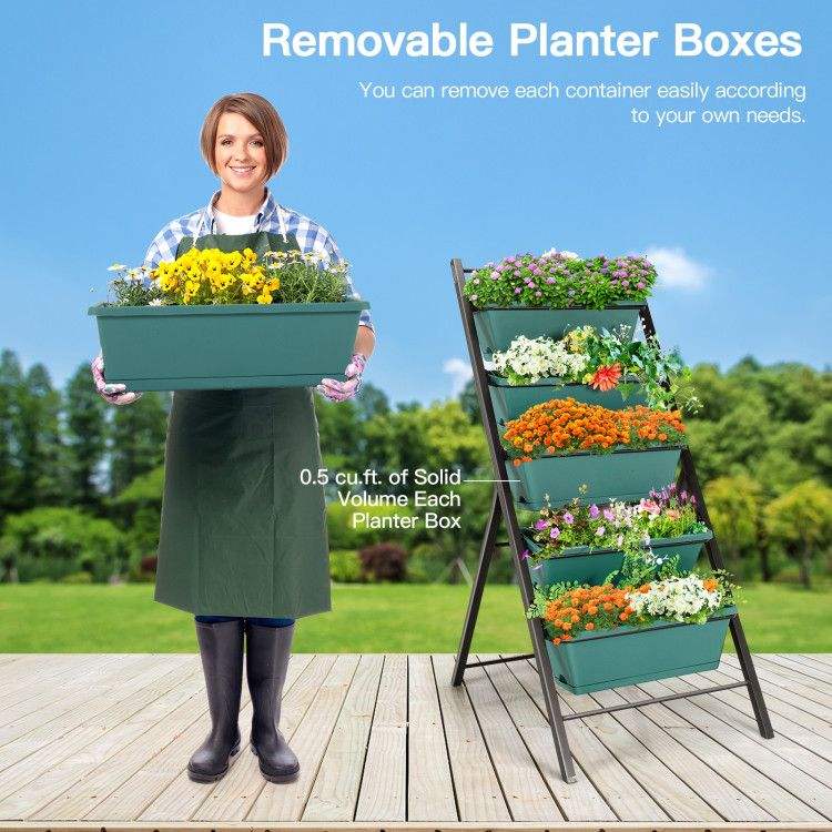 5-Tier Vertical Garden Planter Box Elevated Raised Bed with 5 Container for Flower Pots & Planters