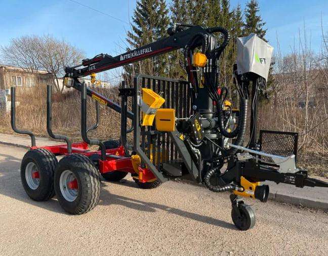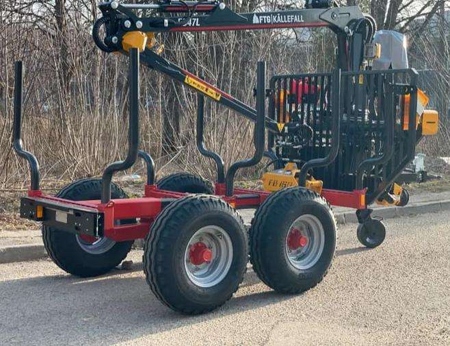 รถพ่วงบรรทุกไม้ขนาด 5 ตัน สำหรับงานป่าไม้ ได้รับการรับรองสำหรับการใช้งานบนถนน พร้อมเครน
