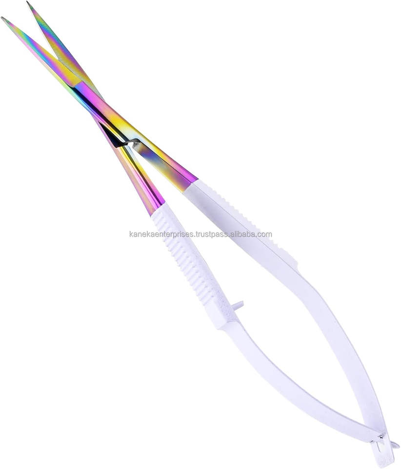กรรไกรสปริงสีขาวและหลากสีขนาด 5 นิ้ว ทำจากสแตนเลสสตีล สำหรับตกแต่งคิ้ว ตัดขนตา ปักลาย งานฝีมือ ปลายแหลมขนาดเล็ก