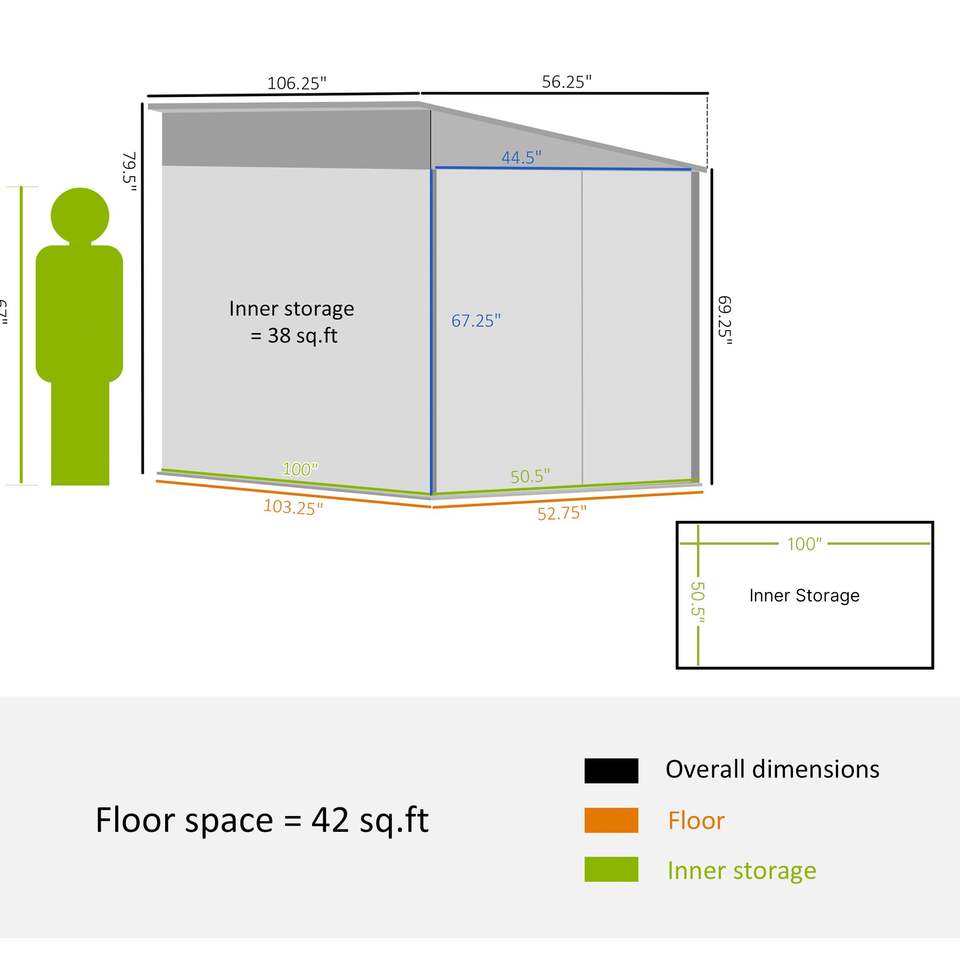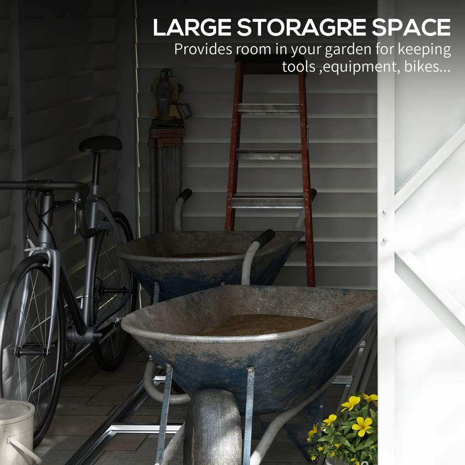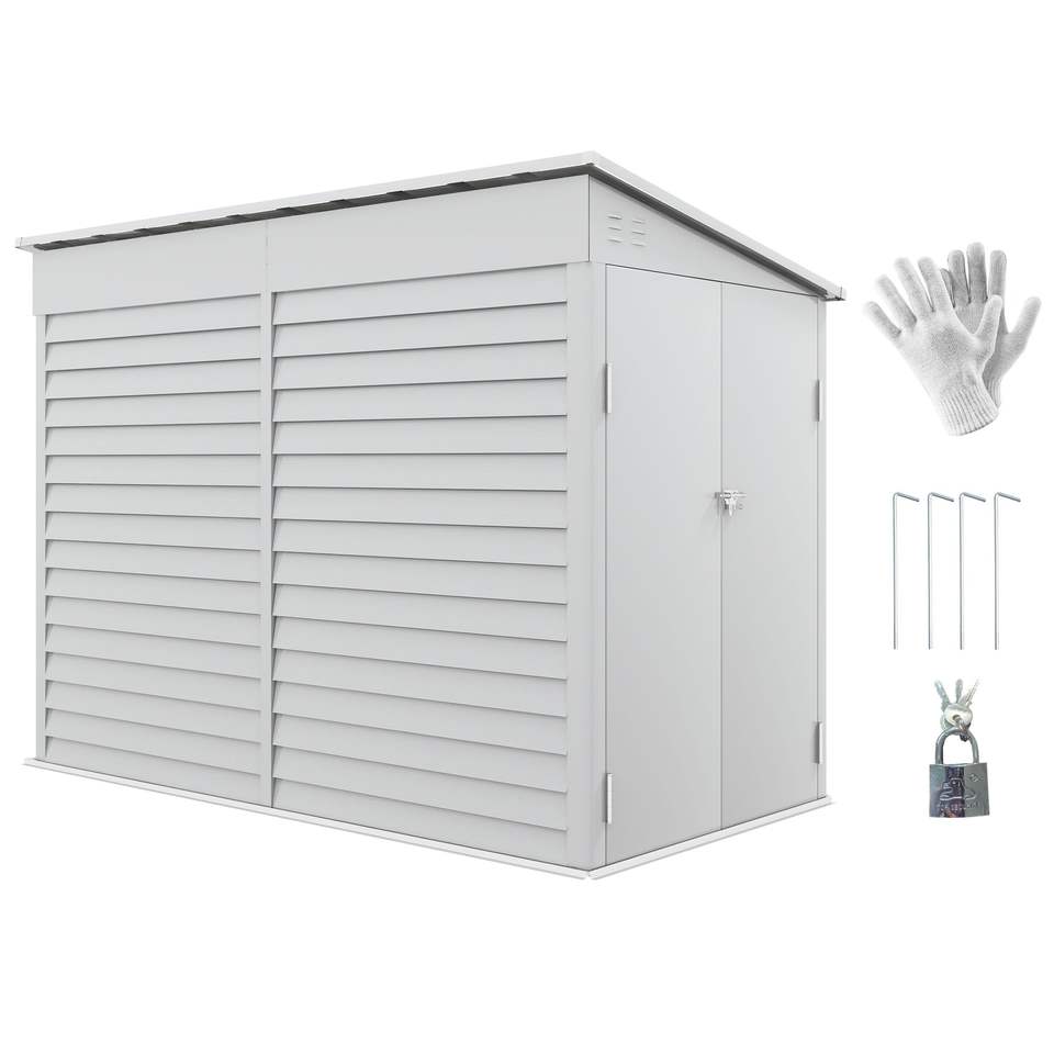 5' X 9' Outdoor Storage Shed with Lockable Doors White for Patio Lawn Backyard Lean-to Design with Foundation & Gloves Included