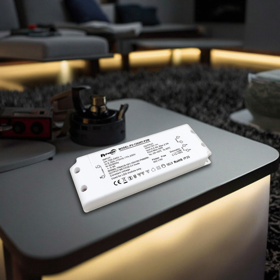 Triac 0-10V ไดร์เวอร์ LED หรี่แสงได้12V/ 24V แหล่งจ่ายไฟ LED 30W CV สวิตช์ไฟ AC-DC แถบไฟ LED ไดร์เวอร์