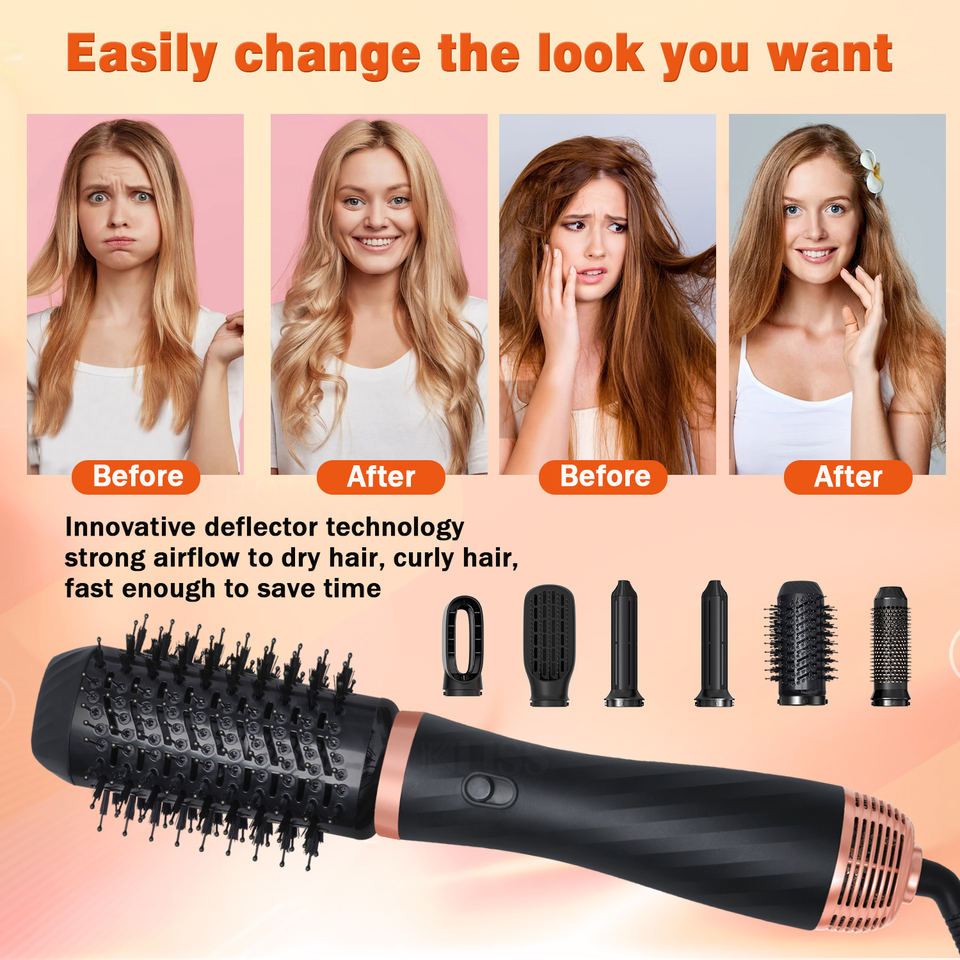 เครื่องหนีบผม 5 in 1 พร้อมฟังก์ชั่นเพิ่มวอลลุ่ม แปรงลมร้อน ม้วนผม เครื่องเป่าผม และจัดแต่งทรงผม