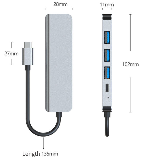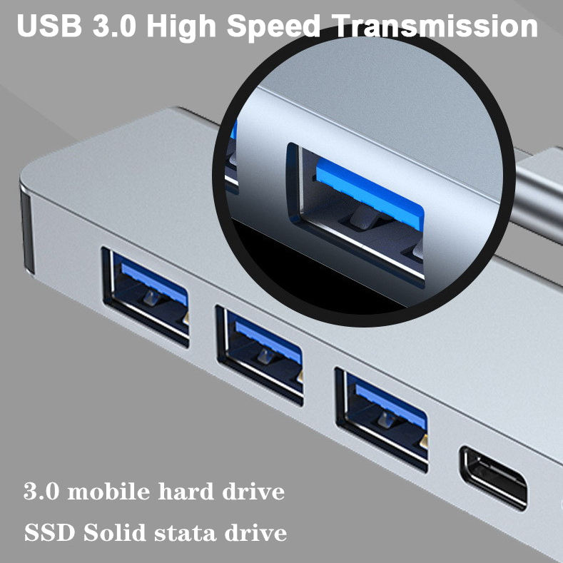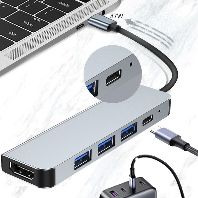 อะแดปเตอร์ฮับ USB Type C แบบ5อิน1พร้อม4K HDMI พอร์ตหลายพอร์ต USB3.0 PD ALL IN ONE สำหรับอุปกรณ์คอมพิวเตอร์พีซีมีในสต็อก