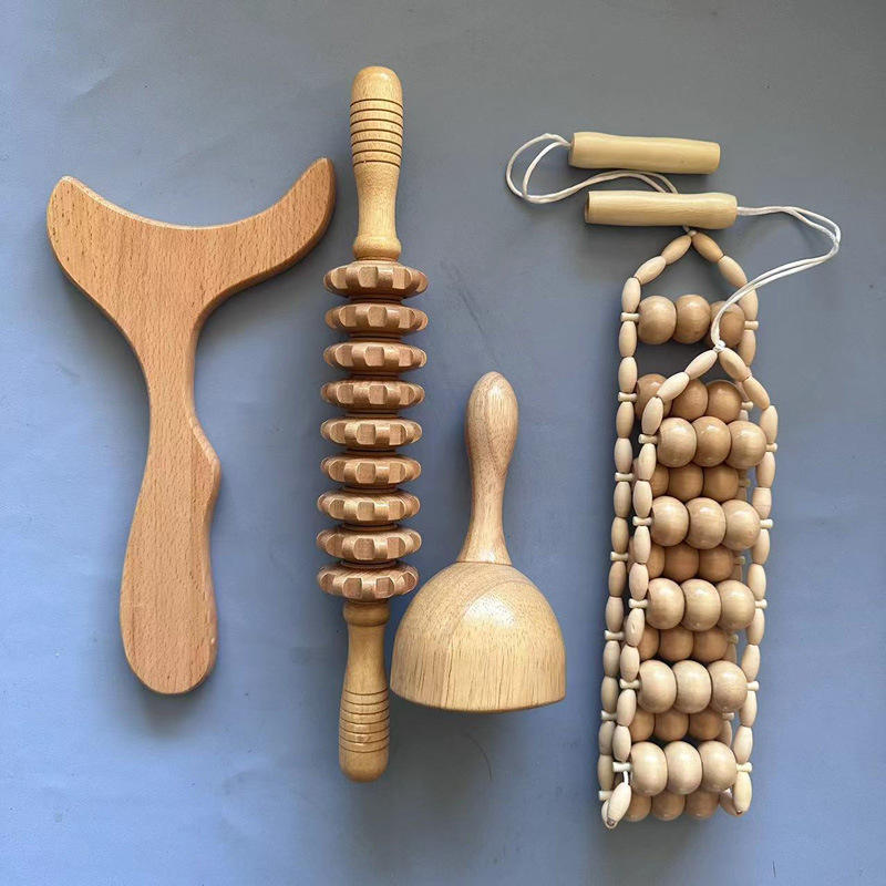5-in-1 Wood Therapy Massage Tool Set with Musical Function Customized Logo Full-Body Muscle Pain Relief Kit