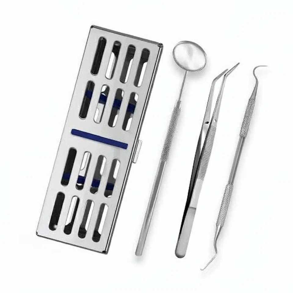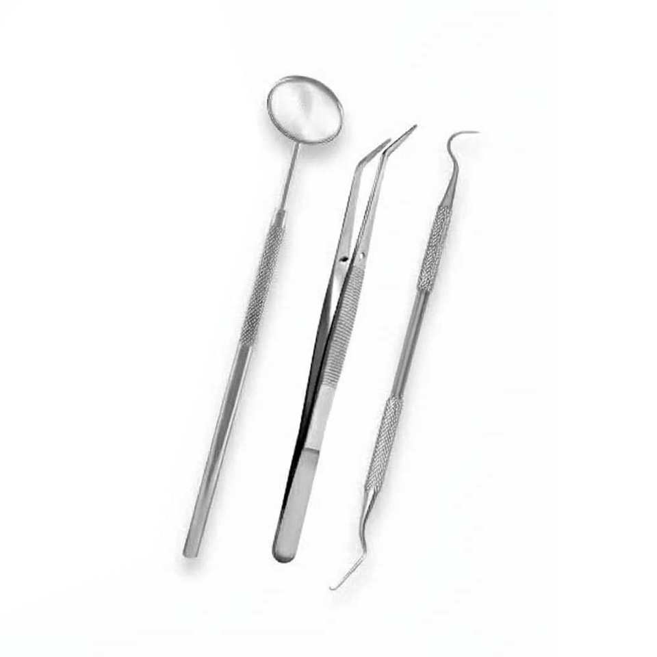 ชุดอุปกรณ์ตรวจวินิจฉัยทางทันตกรรมพื้นฐาน 5 ชิ้น ประกอบด้วยกระจกตรวจฟัน หัววัด และเครื่องมือสำรวจช่องปาก ทำจากสแตนเลส