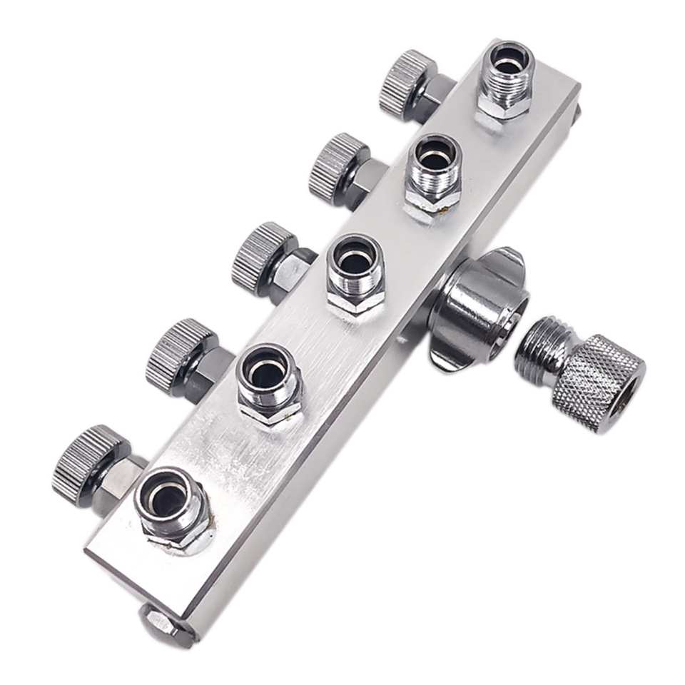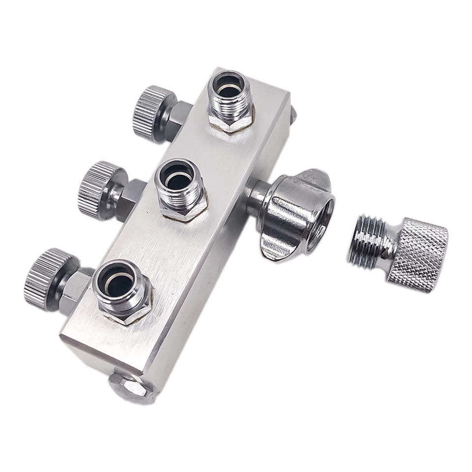 แอปพลิเคชัน:สำหรับเชื่อมต่อ airbrushes ได้สูงสุดสามตัวกับแหล่งจ่ายอากาศหนึ่งตัว