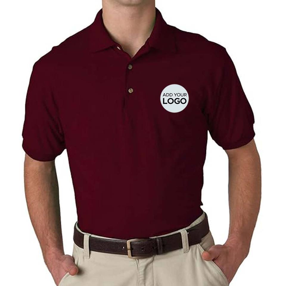 เสื้อโปโลผ้าเจอร์ซีย์แขนสั้นผสมคอตตอน/โพลีเอสเตอร์ 50/50 มีกระเป๋า เหมาะสำหรับเล่นกอล์ฟ พร้อมโลโก้