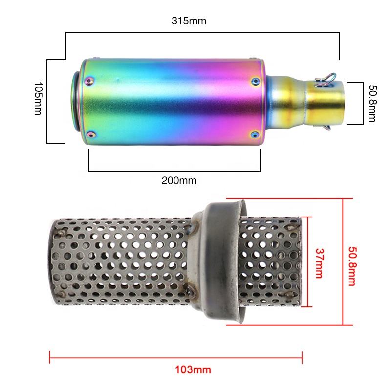 ท่อไอเสียแบบยาว 50.8/60.5 มม. รุ่นใหม่ล่าสุด สำหรับรถจักรยานยนต์ทั่วไป แบบสองช่องระบายอากาศ พร้อมปลั๊กเก็บเสียงและตัวลดเสียง DB Killer