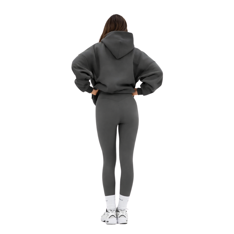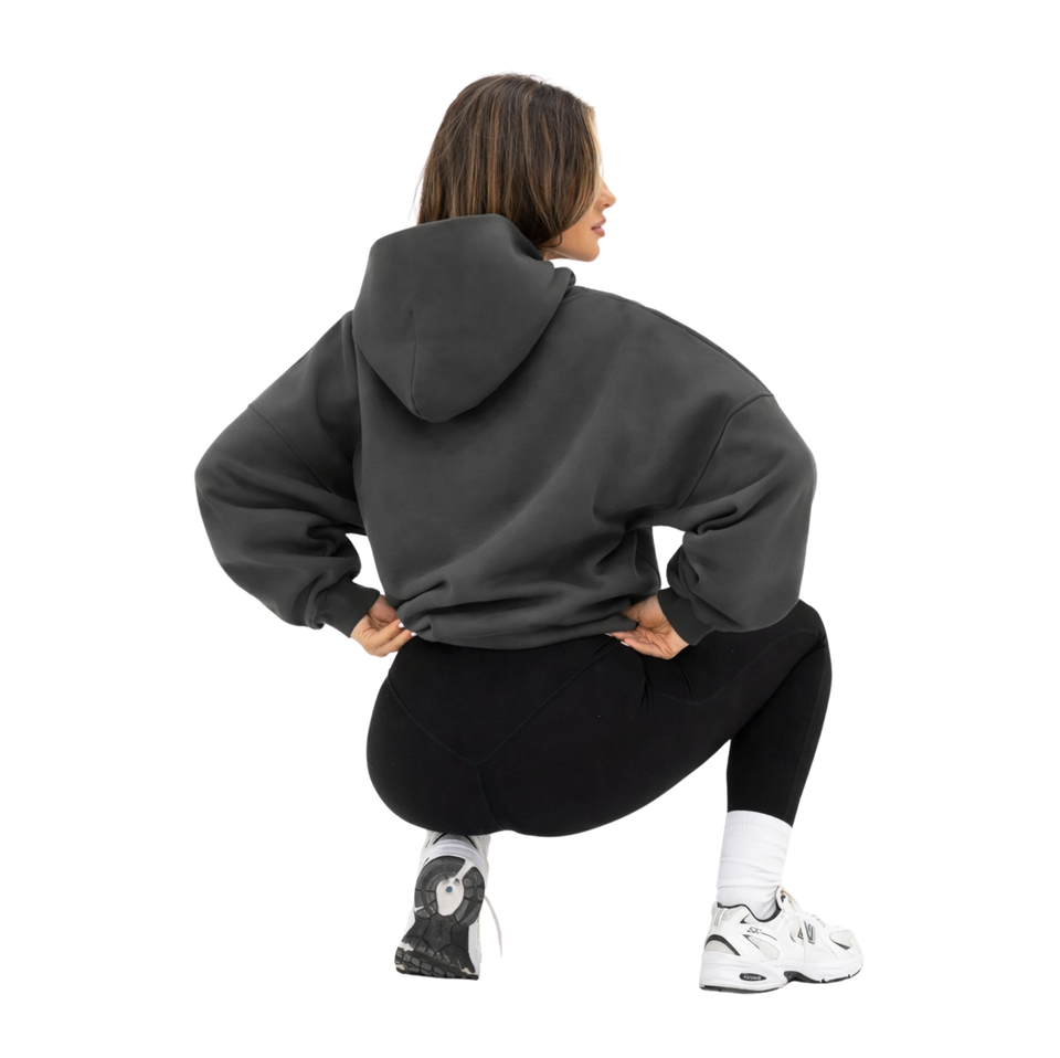 เสื้อฮู้ดดี้โอเวอร์ไซส์ผู้หญิง สีกากีเทา ผ้าฝ้าย 50% โพลีเอสเตอร์ 50% สไตล์สตรีทแวร์ ไหล่ตก ทรงหลวม ใส่สบาย แฟชั่นสำหรับฤดูหนาว