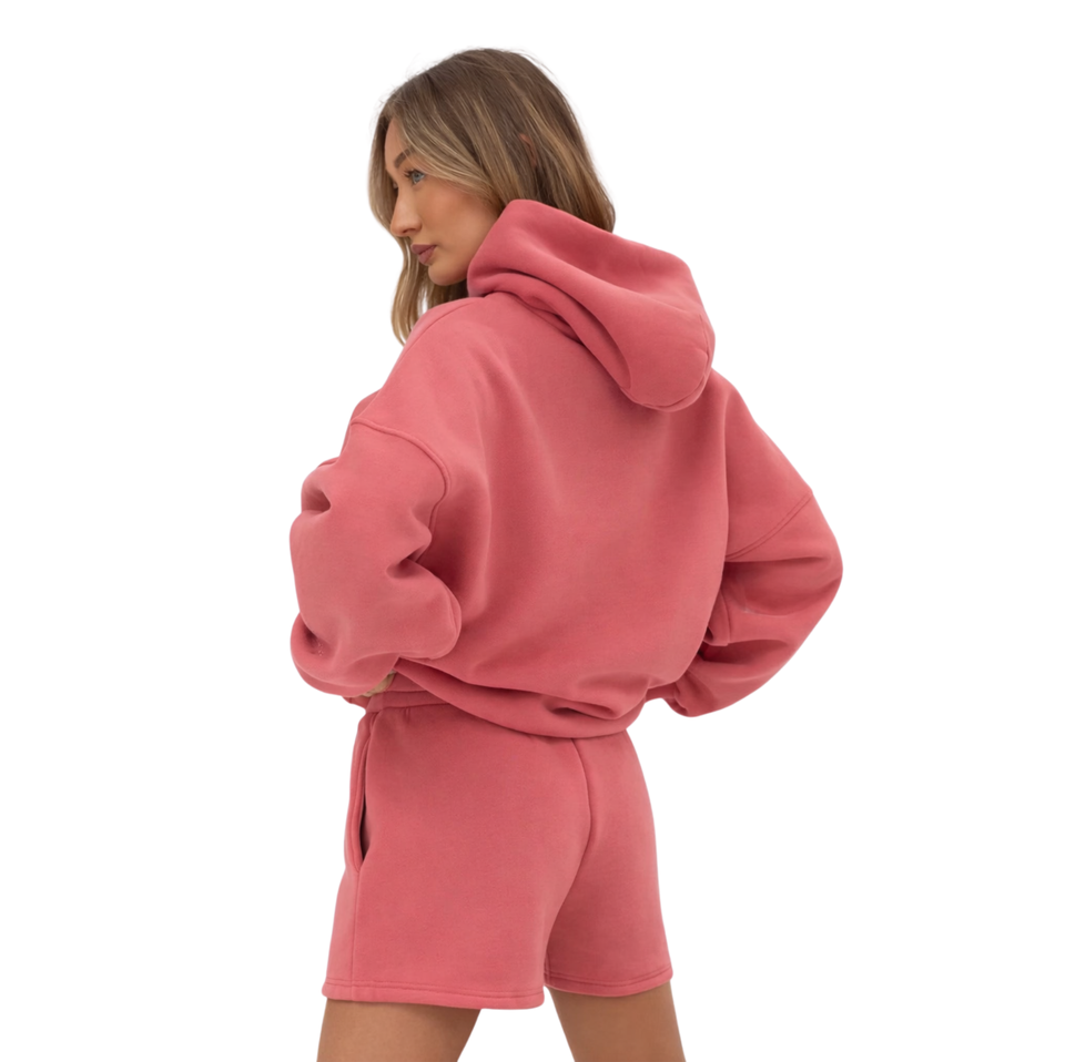 เสื้อฮู้ดดี้โอเวอร์ไซส์ผู้หญิง ผ้าคอตตอน 50% โพลีเอสเตอร์ 50% สีซันไรส์คอรัล สไตล์สตรีทแวร์ ทรงหลวม ไหล่ตก ใส่สบาย แฟชั่นสำหรับฤดูหนาว