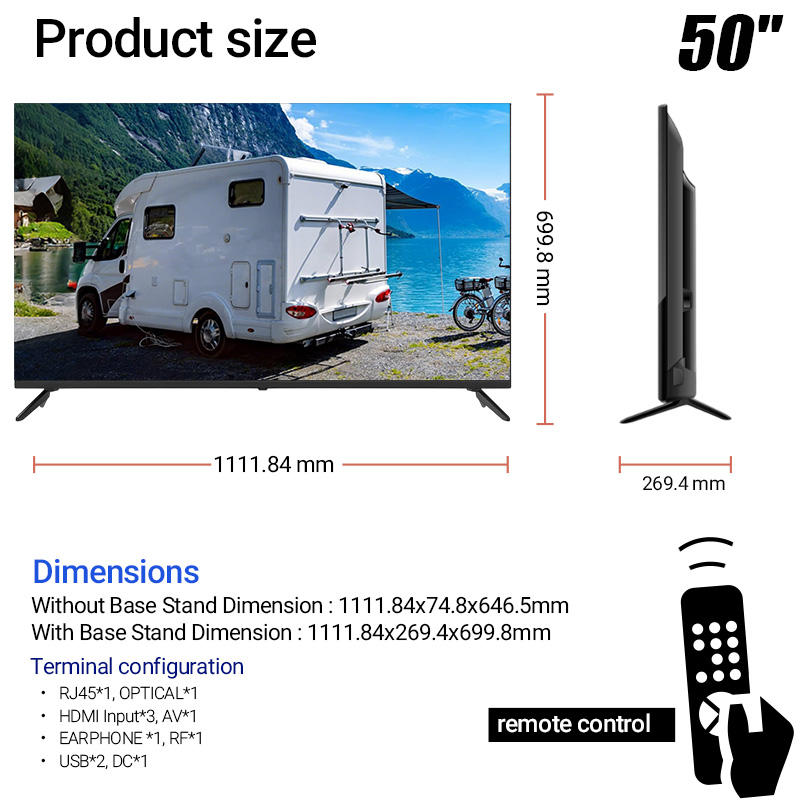 50นิ้ว4K UHD Goo-GLE motorhome RV ทีวีรถยนต์ทีวี2G 8G Chromecast ติดผนังติดตั้งบนรถคาราวานทะเลแบบพกพา DC 12V สมาร์ททีวี