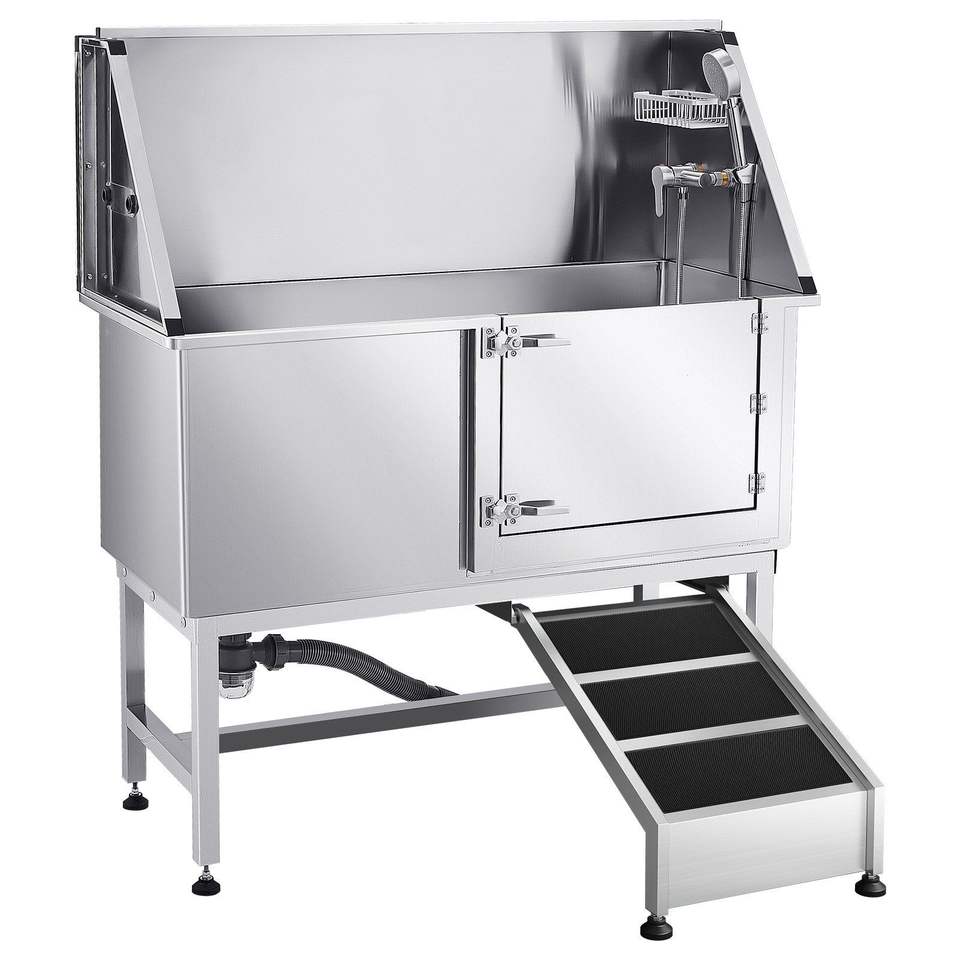 อ่างอาบน้ำสุนัขสแตนเลสขนาด 50 นิ้ว พร้อมทางลาด แผ่นกรองน้ำ PE ก๊อกน้ำ ฝักบัว ที่วางสบู่ อ่างอาบน้ำสัตว์เลี้ยงขนาด 50 นิ้ว