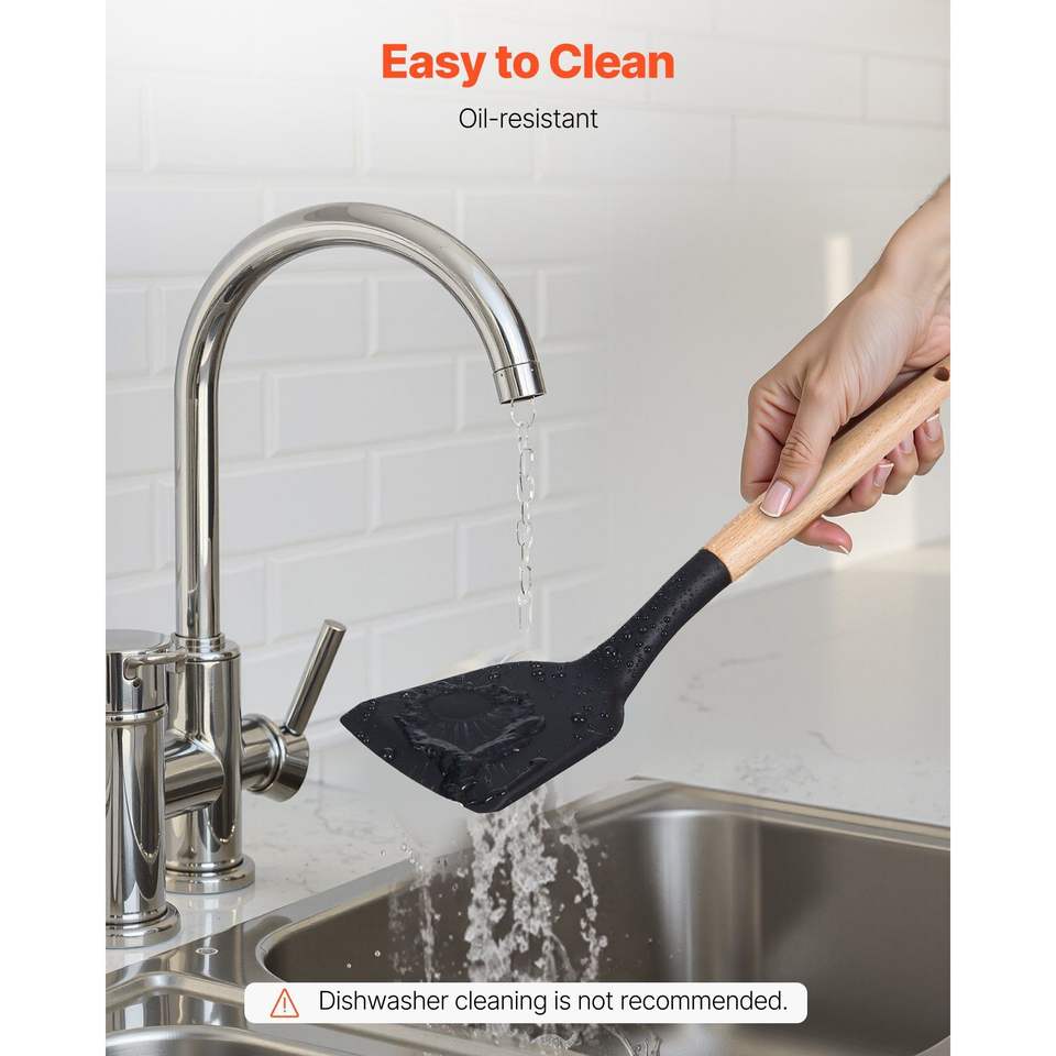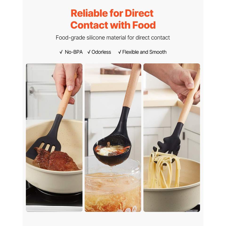 ชุดอุปกรณ์ทำครัวซิลิโคน 50 ชิ้น ทนความร้อนได้ถึง 428 องศาฟาเรนไฮต์ พร้อมที่วางอุปกรณ์ไม้ และช้อนต่างๆ สำหรับทำอาหารในครัว