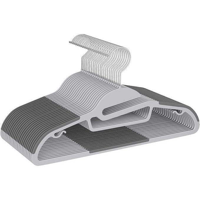 ไม้แขวนเสื้อพลาสติก 50 ชิ้น ดีไซน์กันลื่น หนา 0.2 นิ้ว ตะขอหมุนได้ 360 องศา ประหยัดพื้นที่ จัดระเบียบห้องนอน