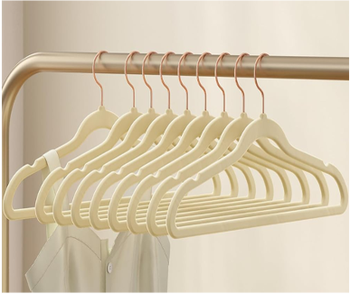 ไม้แขวนเสื้อกำมะหยี่สีโรสโกลด์ 50 ชิ้น แบบบาง ทนทาน หนา 0.2 นิ้ว สำหรับเด็กและทารก พร้อมตะขอหมุนได้ 360 องศา ประหยัดพื้นที่ในตู้เสื้อผ้า
