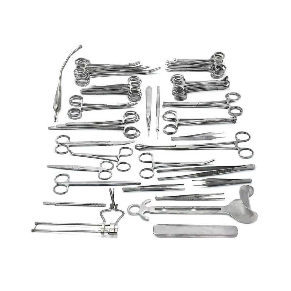 ชุดเครื่องมือผ่าตัดผ่าเปิดหน้าท้องแบบพื้นฐาน 50 ชิ้น ทำจากสแตนเลส สำหรับการผ่าตัดทั่วไป