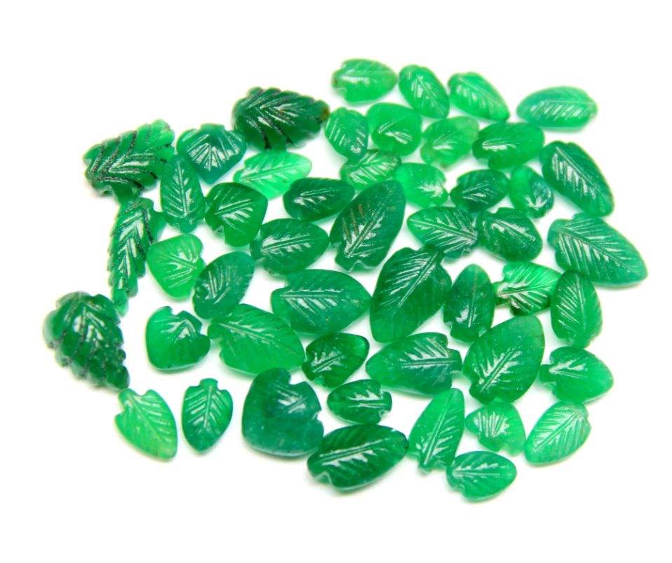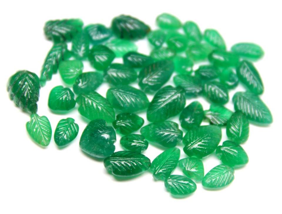พลอยพลอยแกะสลักใบเรียบสีมรกตธรรมชาติ50ชิ้น