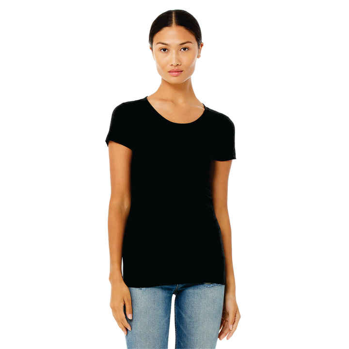 50% โพลีเอสเตอร์25% Airlume หวีและแหวนปั่นผ้าฝ้าย25% เรยอน40เดียว3.8ออนซ์ Heather สีดำผู้หญิง Triblend แขนสั้น T-Sh