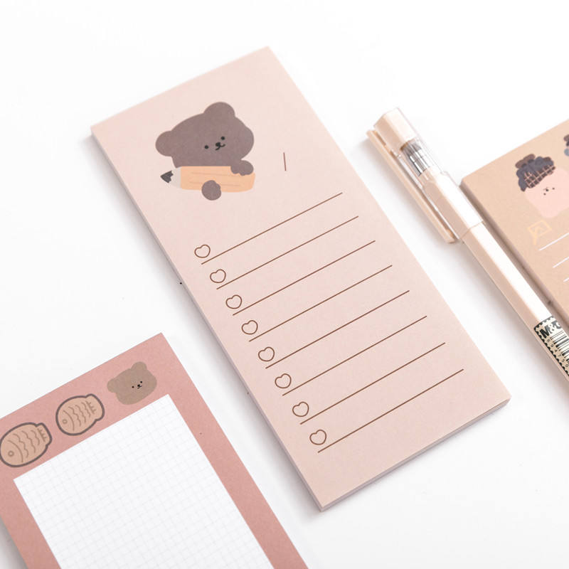 สมุดบันทึกแบบรายสัปดาห์ลายหมีน่ารักสไตล์เกาหลี 50 แผ่น พร้อมกระดาษโน้ตแบบติดได้