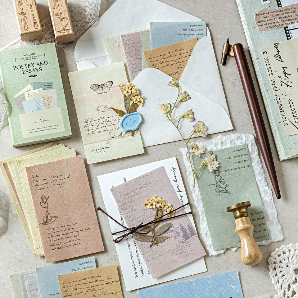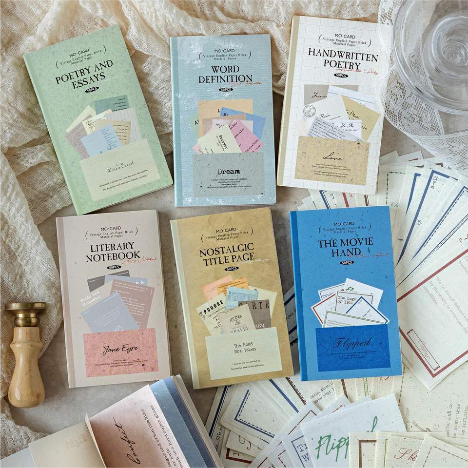 50แผ่น/แพ็คย้อนยุคชุดห้องสมุดภาษาอังกฤษวัสดุกระดาษหลวมสมุดโน๊ตแบบเหนียวสำหรับตกแต่งเคสมือถือภาพปะติด
