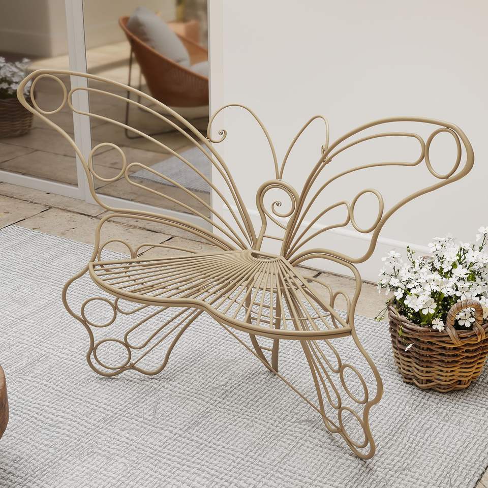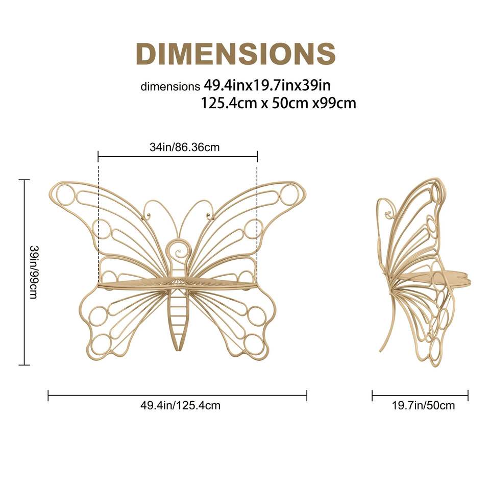 ม้านั่งเหล็กทรงผีเสื้อขนาด 50 นิ้ว สีน้ำตาล สำหรับพื้นที่กลางแจ้ง - เหมาะสำหรับระเบียง สนามหญ้า สวนหย่อม และพื้นที่นั่งเล่น